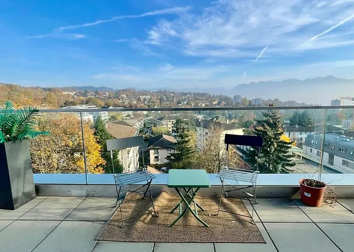 Penthouse 360 Lake View 2Br, Large Terrace 로잔는 셍프헝쑤와 광장에서 2.6km 떨어져 있습니다. 80m^2 아파트는 1개의 침실, 1개의 욕실과 부엌을 갖추고 있습니다.
